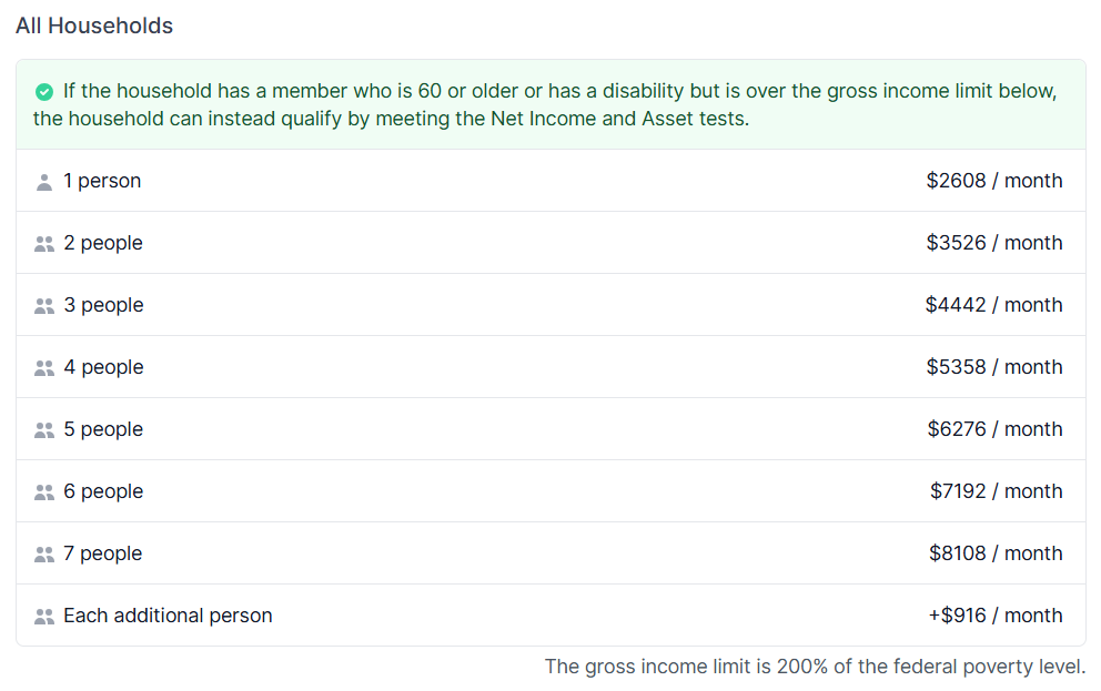 Your household income should fall below a certain threshold, typically based the state of Ohio SNAP income eligibility. (see SNAP Gross Income Chart below)